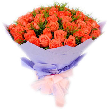 【花材】 花束:52支粉玫瑰+少許配花(紫色皺紋紙圓形包裝) 【花語(yǔ)】 在緣分的天空下,在這個(gè)特殊的日子里,借這束鮮花向你表明,愿執(zhí)子之手,與子偕老! |
