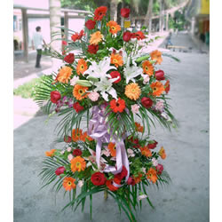 「名 稱」 鵬程大展 「材 料」 太陽花,玫瑰,百合,康乃馨,洋蘭,襯花、綠葉點綴 「包 裝」 支架雙層花籃 1對 「贈送對象」 「鮮花用途」 商務(wù), 開業(yè), 會議 「花 語」 大業(yè)開鵬舉,東風(fēng)啟壯圖;雄心創(chuàng)大業(yè);壯志寫春秋 「配送范圍」 該產(chǎn)品可送達全國 |