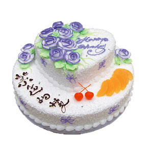 材 料: 雙層鮮奶蛋糕, 香甜可口,經(jīng)典裱花,水果裝飾表層。(6+10或8+12或10+14) |