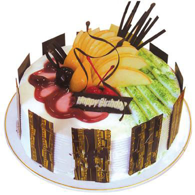 [包裝] 購買蛋糕附送賀卡、刀、叉、盤、蠟燭一套 圓形鮮奶水果蛋糕,時(shí)令水果裝飾,巧克力圍圈 [蛋 糕 說] 讓我為你祝福,讓我為你歡笑,因?yàn)樵谀闵盏慕裉,我的?nèi)心也跟你一樣地歡騰、喜悅。祝你快樂! |