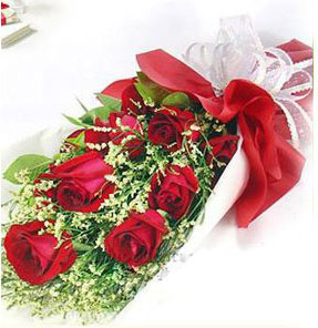 鮮花類(lèi)別: 玫瑰 花束 使用場(chǎng)合:愛(ài)人 生日鮮花 愛(ài)情鮮花 玫瑰 戀人 詳細(xì)說(shuō)明: [材質(zhì)]紅玫瑰9枝,加拿大黃鶯或情人草點(diǎn)綴。 [款式]白色棉紙包裝、紅色棉紙托底,珠光白色絲帶束扎,扇形花