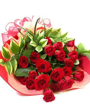[名稱] 最愛 [包裝] 外層紅色,內(nèi)層淡粉色皺紋紙單面包裝搭配紅色紗網(wǎng)花結(jié)。 [花材] 紅玫瑰21支、蓬萊松或花葉萬年青、綠葉搭配。 [花語] 無論你在何時,無論你在何處,無論你做什么;請記。何矣肋h支持你,無時無刻不關(guān)心著你,因為你是我最愛的人. |