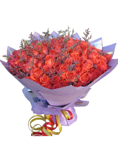 [材 料]:99支粉色玫瑰,搭配情人草所精心設(shè)計(jì)制作的 [包 裝]:紫色皺紋紙精美包裝 [花 語]:有了你在我身邊,我才知道我是世界最幸福的 |