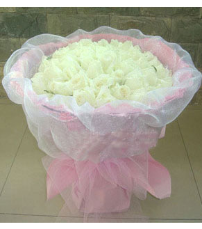 [花 名]:風花雪月 [材 料]:花束,66朵白玫瑰. [包 裝]:粉皺紋紙圓形精美包裝,配蝴蝶結束扎。 [花 語]:盡管沒有浪漫傾城的風花雪月,也沒有意亂情迷的海誓山盟,但我們卻能感覺到彼此相偎時的那種心跳。 |