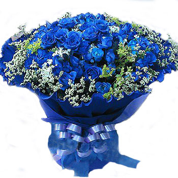 名 稱:99枝藍(lán)玫瑰/今生的約定 花 材:99枝藍(lán)玫瑰,滿天星點(diǎn)綴其中,藍(lán)色卷紙時尚精美包裝 包 裝:藍(lán)色沙網(wǎng)和藍(lán)絲帶,圓形包裝 花 語:想牽你的手,一起到一個叫永遠(yuǎn)的地方,看天長地久的風(fēng)景,嘗