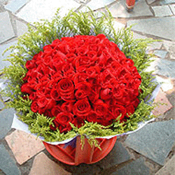 「名 稱」 我只在乎你 「材 料」 66枝紅玫瑰,加拿大黃鶯豐滿外圍 「包 裝」 淺紫色皺紋紙多層包裝,淺紫色緞帶打結(jié).圓形花束. |