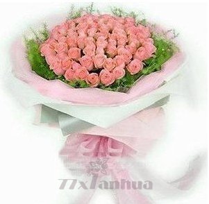 花 材:66朵粉玫瑰,黃鶯, |