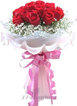 「名 稱」 愛(ài)不釋手 「材 料」 19枝頂級(jí)紅玫瑰緊密居中,滿天星豐滿外圍 「包 裝」 白色玻璃紙內(nèi)襯,淺粉色卷邊皺紋紙外層束裹,粉色寬幅絲帶打蝴蝶結(jié)。圓形無(wú)角花束。 「花 語(yǔ)」 想念那條街,想
