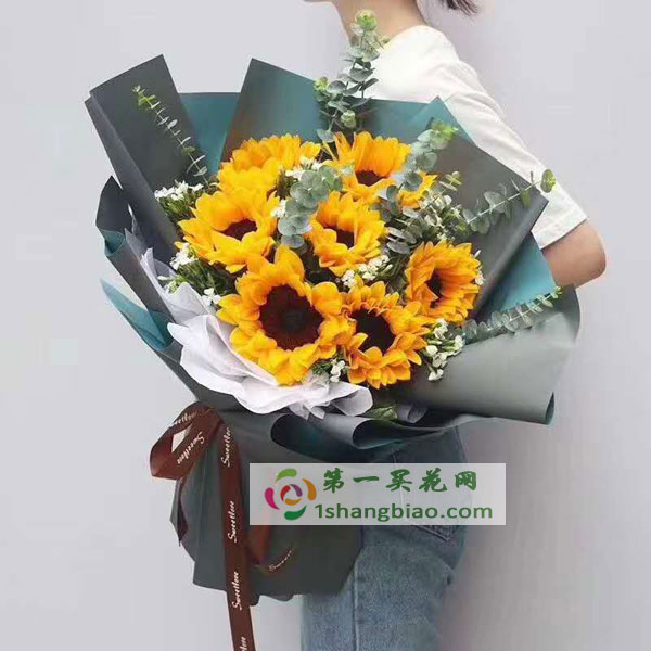材料:7朵向日葵,大量游枷利葉豐滿 包裝:綠色歐亞紙扇形包 卡片參考:男人真是不容易,每天奔波為家庭,心里壓力還真大,祝男人節(jié)快樂!一生快樂! |